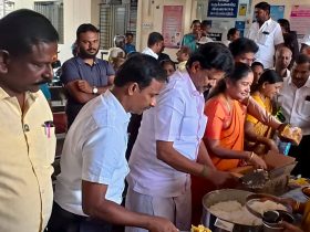 கோவை மே 14 மதுரையை சேர்ந்தவர் தினேஷ் ( வயது 32) கட்டிட தொழிலாளி .இவர் கோவை காந்திபுரம் பகுதியில் உள்ள ஒரு தங்கும் விடுதியில் தனது நண்பர்களுடன் தங்கியிருந்து கட்டிட வேலைக்கு சென்று வந்தார். நேற்று முன்தினம் இரவு தினேஷ் தனது 2 நண்பர்களுடன் ரத்தினபுரி பகுதியில் உள்ள டாஸ்மாக் கடைக்குச் சென்றார். அவர்கள் அங்குள்ள பாரில் அமர்ந்து மது குடித்தனர் .பின்னர் அவர்கள் 3பேரும் காந்திபுரம் 100 அடி ரோடு, ஜி.பி.சிக்னல் அருகே நடந்து வந்து கொண்டிருந்தனர். அப்போது தினேஷுக்கும் மற்ற 2 பேருக்கும் இடையே திடீரென்று வாய் தகராறு ஏற்பட்டது .இதில் ஆத்திரமடைந்த அவர்கள் 2 பேரும் சேர்ந்து தினேஷை சரமாரியாக தாக்கினர் .அவரும் பதிலுக்கு தாக்கினார் .இதனால் ஆத்திரம் அடைந்த அந்த 2 பேரும் சேர்ந்து தினேசை பிடித்து கீழே தள்ளினர். பின்னர் ரோட்டின் ஓரத்தில் கிடந்த கல்லை எடுத்து தினேசின் தலையில் ஓங்கி போட்டனர் .இதில் பலத்த காயமடைந்த தினேஷ் ரத்த வெள்ளத்தில் அதே இடத்தில் பிணமானார். உடனே அந்த 2 பேரும் அங்கிருந்து தப்பி ஓடிவிட்டனர். இந்த நிலையில் நேற்று காலையில் அந்த வழியாக சென்றவர்கள் ரோடு ஓரத்தில் ரத்த வெள்ளத்தில் ஒருவர் பிணமாக கிடைப்பதை பார்த்து காட்டூர் போலீசுக்கு தகவல் தெரிவித்தனர். போலீசார் சம்பவ இடத்துக்கு சென்று விசாரணை நடத்தினர். இதில் பிணமாக கிடந்தது கட்டிட தொழிலாளி தினேஷ் என்பதும், நண்பர்களுக்குள் ஏற்பட்ட தகராறில் அவர் கொலை செய்யப்பட்டதும் தெரிய வந்தது .இதையடுத்து போலீசார் தினேஷ் உடலை கைப்பற்றி பிரேத பரிசோதனைக்காக கோவை அரசு மருத்துவமனைக்கு அனுப்பி வைத்தனர். இது தொடர்பாக கொலை வழக்கு பதிவு செய்து தப்பி ஓடிய 2 பேரை போலீசார் தேடி வருகிறார்கள்..