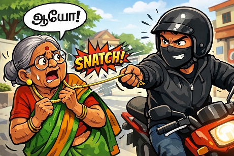 கோவை அருகே உள்ள துடியலூர், என் ஜி ஜி ஓ காலனியை சேர்ந்தவர்மோகன் . இவரது மனைவி கனகவல்லி (வயது 61) பூ வியாபாரம் செய்து வருகிறார். இவர் நேற்று அங்குள்ள ரங்கம்மாள் காலனியில் நடந்து சென்றார். அப்போது அந்த வழியாக வந்த ஒரு ஆசாமி கனகவல்லியின் கழுத்தில் கிடந்த தங்கச் செயினை பறிக்க முயன்றார். இதனால் அதிர்ச்சி அடைந்த அவர் கூச்சலிட்டார். உடனே அக்கம் பக்கம் ஓடி வந்து நகை பறிக்க முயறை அந்த ஆசாமியை மடக்கி பிடித்து தர்ம அடி கொடுத்தனர். பின்னர் அவர் துடியலூர் போலீசில் ஒப்படைக்கப்பட்டார் போலீசார் அவரை கைது செய்தனர். விசாரணை அவர் பெரியநாயக்கன்பாளையம் ,ஜோதிபுரம் ராஜூ நகரில் வசிக்கும் செல்ல முத்து மகன் கார்த்திக் (வயது 21) என்பது தெரிய வந்தது. இவரது சொந்த ஊர் வால்பாறை பக்கம் உள்ள சோலையார் டேம் ,உருளிக்கல் எஸ்டேட்ஆகும். இவரிடம் விசாரணை நடந்து வருகிறது..