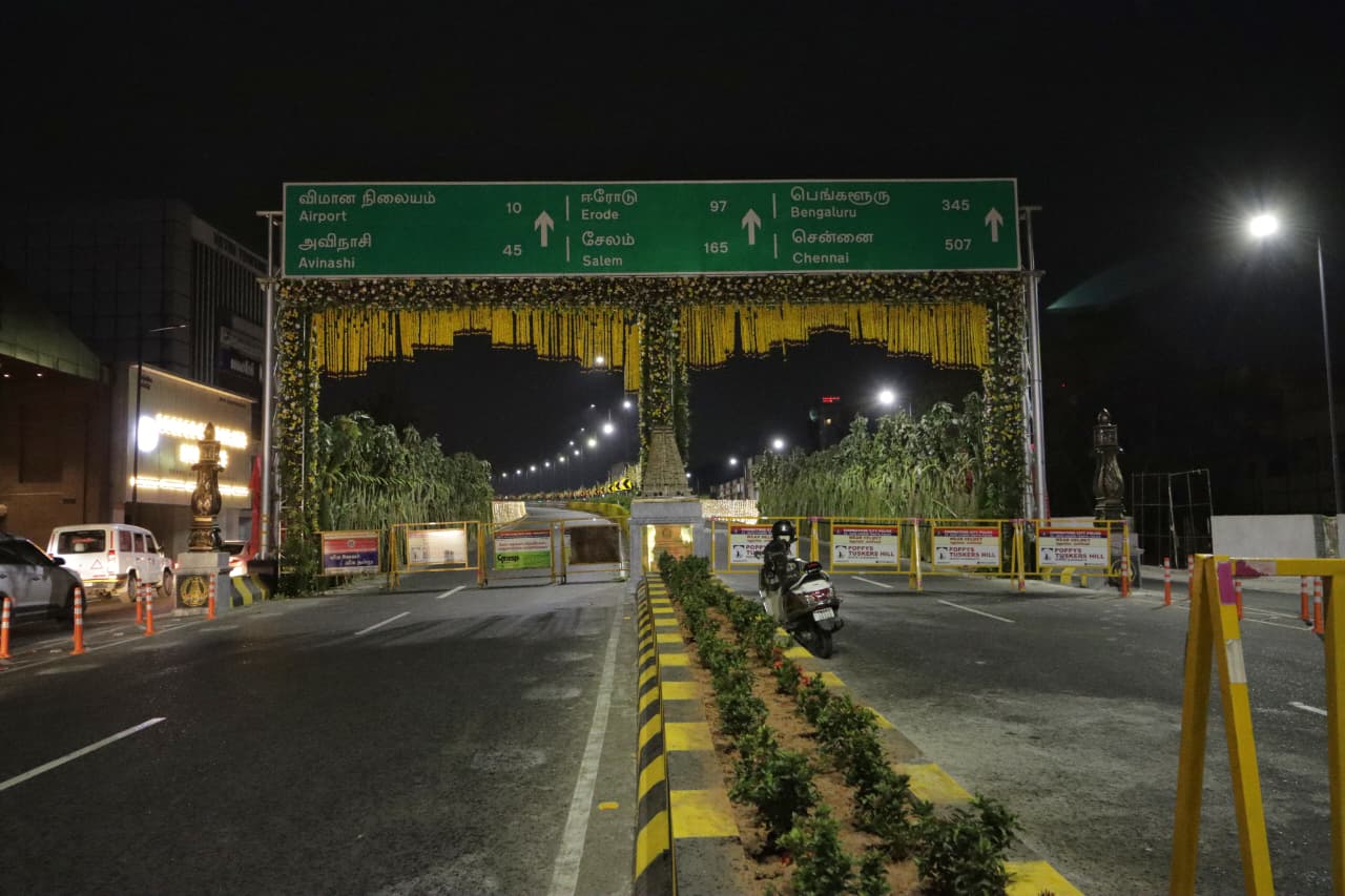 கோவை அக்டோபர் 10 கோவை அவினாசி ரோட்டில் உப்பிலிபாளையம் முதல் கோல்டு வின்ஸ் வரை 10-1கிலோமீட்டர் தூரம் வரை புதியமேம்பாலம் கட்டப்பட்டுள்ளது. இது தென்னிந்தியாவின் மிக நீளமான மேம்பாலம் ஆகும். இந்த மேம்பாலம் அமைக்கும் பணி 2020-ம்ஆண்டு டிசம்பர் மாதம் தொடங்கப்பட்டது. இந்த மேம்பாலத்தில் மொத்தம் 305 கான்கிரீட் தூண்கள் அமைக்கப்பட்டுள்ளது. இந்த சாலையில் ஹோப் காலேஜ், நவ இந்தியா, அண்ணா சிலை, விமான நிலையம் என 4 இடங்களில் ஏறுதளங்கள், இறங்குதளங்கள் உள்ளது .இதன் சிறப்பு அம்சமாக ஹோப் காலேஜ் அருகே ரயில்வே மேம்பால பகுதியில் 52 மீட்டர் நீளம் கொண்ட இரும்பு கர்டர்கள் அமைக்கப்பட்டு மேம்பாலம் கட்டப்பட்டுள்ளது. மற்ற பாலங்களைப் போல் கான்கிரீட் பீம் வைத்து கட்டப்படாமல் தனித்தனி ஆக சிறு சிறு தளங்களாக தயார் செய்யப்பட்டு வலுவான இரும்பு கம்பிகள் மூலம் இந்த தளங்கள் இணைக்கப்பட்டு மேம்பாலம் அமைக்கப்பட்டுள்ளது. இந்த மேம்பாலத்தில் மூலம் கோவைஉப்பிலி பாளையத்திலிருந்து கோல்டுவின்ஸ் செல்லும் நேரம் 45 நிமிடங்களில் இருந்து 10 நிமிடங்களாக குறையும் என அதிகாரிகள் தெரிவித்தனர். வலுவாக கட்டப்பட்டுள்ள இந்த மேம்பாலத்தில் கனரக வாகனங்களும் செல்ல முடியும். இந்த மேம்பாலத்தின் அடிப்பகுதியில் 120 இடங்களில் மழைநீர் சேகரிப்பு கட்டமைப்புகள் ஏற்படுத்தப்பட்டு அலங்கார செடிகளும் வளர்க்கப்பட்டு வருகின்றன. மேம்பாலத்தில் 4 வழி சாலை அதன் கீழ் 6 வழிச்சாலை என மொத்தம் 10 வழிச்சாலையாக கோவை அவிநாசி ரோடு மாறிவிட்டது. இந்த மேம்பாலம் திறக்கப்படுவதன் மூலம் கோவை அவினாசி ரோட்டில் போக்குவரத்து நெரிசல் வெகுவாக குறைந்துள்ளது.முதலமைச்சர் நேற்றுபாலத்தை திறந்ததும் பொதுமக்கள் கார்களிலும் ,இருசக்கர வாகனங்களிலும் சென்று அந்த பாலத்தில் மகிழ்ச்சிபயணம் செய்தனர்.பாலத்தில் 4சக்கர வாகனங்களில் செல்பவர்கள் அதிவேகமாக செல்வதாககாவல்துறைக்கு தகவல் வந்துள்ளது.இதையடுத்து அந்த பாலத்தில் வேக கட்டுப்பாடு கண்காணிப்பு கேமராக்கள்அமைக்கப்பட உள்ளது.பாதுகாப்பு கருதி இரவு 9 மணி முதல் காலை மணி வரை பாலம் அடைக்கப்பட்டுள்ளது.இதற்காக ரோட்டில் தடுப்பு வேலி வைக்கப்பட்டுள்ளது.