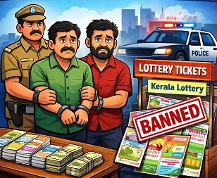 கோவை மாவட்டம் ஆனைமலை பக்கம் உள்ள அம்பராம்பாளையம் பகுதியில் தடை செய்யப்பட்ட கேரள மாநிலலாட்டரி சீட்டுகள் விற்பனை செய்வதாக போலீசுக்கு தகவல் வந்தது ஆனைமலை காவல் நிலைய சப்- இன்ஸ்பெக்டர் சக்திவேல் நேற்று மாலை அங்கு ரோந்து சுற்றி வந்தார். அப்போது கேரள மாநில லாட்டரி டிக்கெட் விற்பனை செய்ததாக ஆனைமலை கணபதிபாளையம், பெரியார் நகரை சேர்ந்த செல்வராஜ் ( வயது 45) கைது செய்யப்பட்டார். இவரிடம் இருந்து 625 கேரள மாநில லாட்டரி டிக்கெட் பறிமுதல் செய்யப்பட்டது. இதே போல பொள்ளாச்சி தாலுகா போலீசார் அய்யம்பாளையம் பஸ் ஸ்டாப் பகுதியில் நடத்திய சோதனையில் கேரள மாநில லாட்டரி டிக்கெட் விற்பனை செய்ததாக திருப்பூர் மாவட்டம் ,உடுமலையை சேர்ந்த கண்ணன் ( வயது 54) கைது செய்யப்பட்டார். இவரிடமிருந்து 24 லாட்டரி டிக்கெட்டுகள் கைப்பற்றப்பட்டது. இருவரும் நீதிமன்றத்தில் ஆஜர்படுத்தப்பட்டு சிறையில் அடைக்கப்பட்டனர்.
