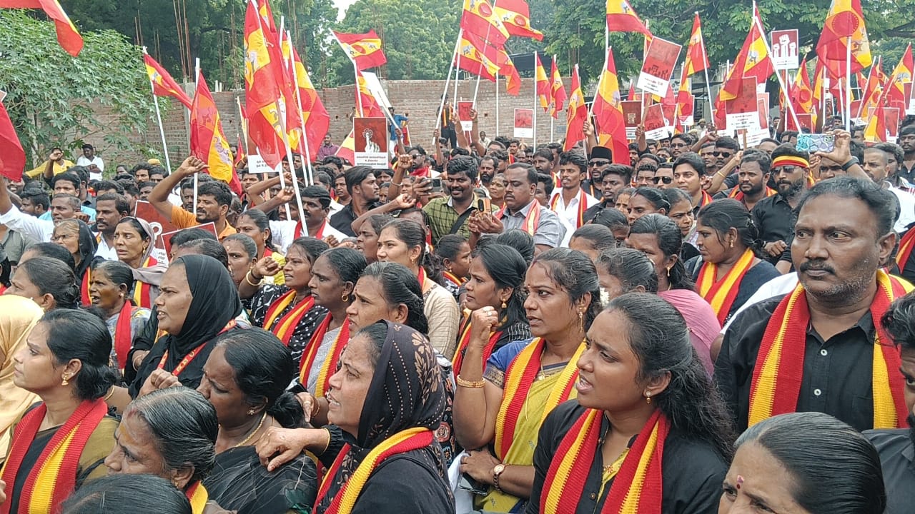 தமிழக மக்களின் வாக்குரிமையை பறிக்கும், வாக்காளர் பட்டியல் சிறப்பு தீவிரத் திருத்தம் குளறுபடிகளை எதிர்த்து, நெல்லையில் தமிழக வெற்றிக் கழகத்தினர் ஆர்ப்பாட்டம் நடத்தினர்.