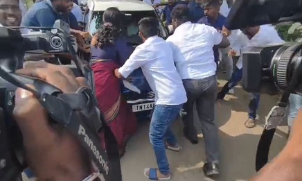 இந்த நிலையில் கட்சி அலுவலகத்தில் பணிகளை முடித்துவிட்டு விஜய் திரும்பியபோது, அவரது காரை  அஜிதா மறிக்க முயற்சி செய்தால், பெரும் பரபரப்பு ஏற்பட்டது. இதனைத் தொடர்ந்து அங்கு இருந்த நிர்வாகிகள் மற்றும் தனியார் பாதுகாவலர்கள், அஜிதா மற்றும் அவரது ஆதரவாளர்களை அப்புறப்படுத்தினர்.