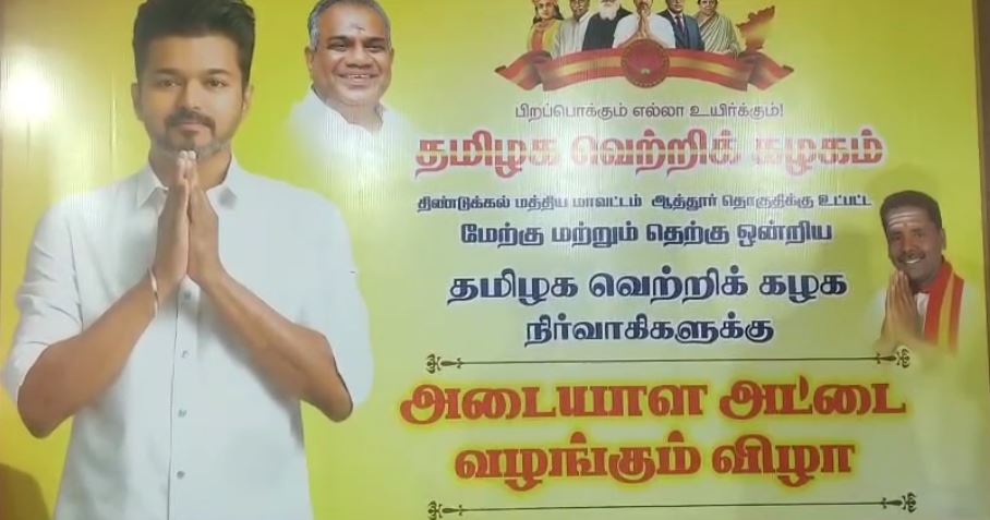 திண்டுக்கல் மாவட்டம் ஆத்தூர் வட்டம் செம்பட்டி தனியார் மஹாலில். தவெக மாநில தலைவர் விஜய் மற்றும் பொதுச் செயலாளர் புஸ்ஸி ஆனந்த் அறிவுறுத்தலின்படி திண்டுக்கல் தவெக மத்திய மாவட்ட செயலாளர் M.L. வாசுதேவன், தலைமையில் ஆத்தூர் மேற்கு ஒன்றியம் மற்றும் தெற்கு ஒன்றிய தமிழக வெற்றி கழக நிர்வாகிகளுக்கு, புதிய அடையாள அட்டை வழங்கும் விழா நடைபெற்றது. அதனைத் தொடர்ந்து உறுதிமொழி ஏற்பு நிகழ்வு மற்றும் தவெக கொள்கை தலைவர்களாக ஏற்றுக் கொள்ளப்பட்ட தந்தை பெரியார், அண்ணல் அம்பேத்கர், வீரமங்கை வேலுநாச்சியார், அஞ்சலையம்மாள், கர்மவீரர் காமராஜர் கொள்கை தலைவர்களுக்கு மத்திய மாவட்ட செயலாளர் மற்றும் திண்டுக்கல் மாவட்ட நிர்வாகிகள் சார்பாக மலர் தூவி மரியாதை செய்யப்பட்டது. அதனைத் தொடர்ந்து கொள்கை பாடல் இசைக்கப்பட்டு, வரவேற்பு நிகழ்வு நடைபெற்றது.