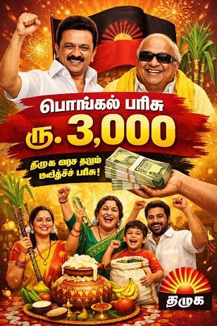 ஏற்கனவே 17 லட்சம் பெண்களுக்கு விடுபட்ட கலைஞர் மகளிர் உரிமைத் தொகையை வழங்கித் தனது செல்வாக்கை உறுதிப்படுத்தியுள்ள திமுக அரசு, அடுத்த கட்டமாகத் தமிழர் திருநாளாம் பொங்கல் பண்டிகையை முன்னிட்டு குடும்ப அட்டைதாரர்களுக்குத் தலா 3,000 ரூபாய் ரொக்கப் பரிசு வழங்கத் திட்டமிட்டுள்ளதாகத் தகவல்கள் கசிகின்றன. நிலவரத்தைப் பொறுத்து இந்தத் தொகை 5,000 ரூபாயாக உயர்த்தப்படவும் வாய்ப்புள்ளதாகக் கூறப்படுகிறது. பெண்களை மையப்படுத்திய இந்தத் திட்டங்கள் மூலம் அவர்களின் முழுமையான ஆதரவைப் பெற்று விடலாம் என ஆளுங்கட்சி கணக்குப் போடுகிறது.